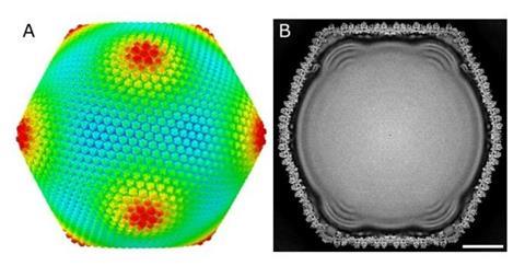 This enabled them to elucidate the detailed arrangement of proteins constituting the massive capsid (250 nm in diameter) (Figure 2).
