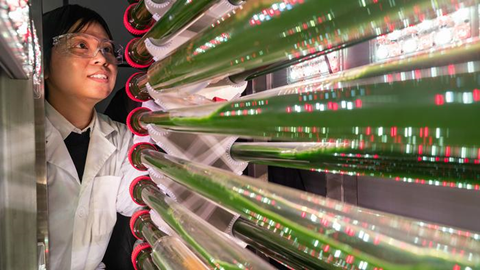 Dai’s lab grows algae in large tank bioreactors. Her lab has built a 100-liter bioreactor named “Shrek” to process industrial flue gas to help clean air pollution. Dai hopes to build bigger versions of Shrek going forward that could be adapted for wastewater treatment and other pollutant removal purposes.